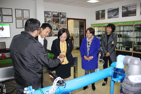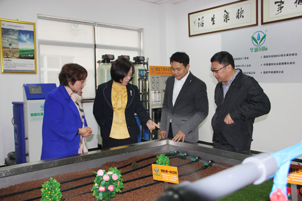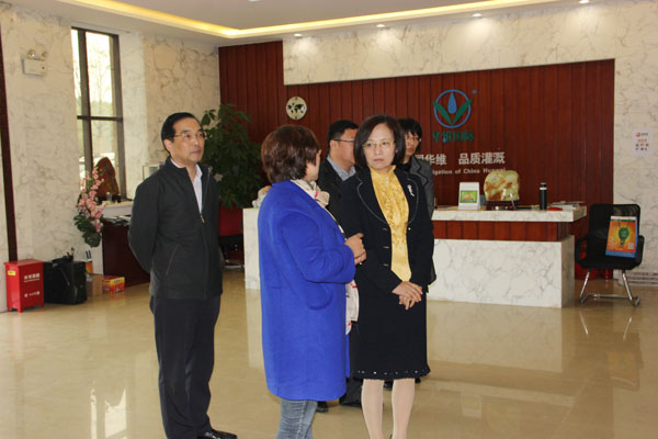 吴总向李部长一行首先介绍了华维水文化园中的大禹雕像、华维亭、农业灌溉历程宣传栏等景点。在讲解到灌溉发展简史时,李部长对于高效水肥一体化灌溉技术高度肯定,对华维从事的行业表示肯定。李部长表示,过去肥料的利用率只有30%左右,大量的浪费不止带来经济上的损失,更是给环境带来了极大的损害。高效水肥一体化灌溉系统不仅可以将肥料的利用率提升至90%左右,更是可以大大提高农业的用水率,全面普及水肥一体化已经是一件势在必行的大事。