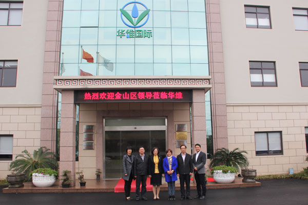 【华维 讯】作为原化工类企业厂区改造为环保型农业科技型企业,上海华维堪称金山亭林工业园企业成功转型的典范,一直以来深受金山区领导的关心和重视。2015年11月17日,上海市金山区委常委、统战部部长李华桂一行到访华维,就华维上海总部的厂区建设、研发生产等情况进行了实地考察指导。金山区农委主任张亚军,华维副总经理吴竹、华维科创中心主任张中华等相关人员陪同。