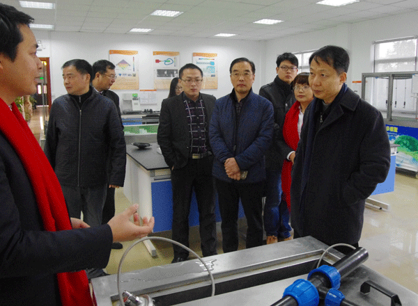 华维科创中心主任张中华为李书记一行介绍了华维一系列的研发设备,展示了由华维自主研发设计、获得国家“十二五”863课题成果的H33阻尼喷头等产品,并就华维的产品研发体系、后续研发计划、近期的一些课题及申报项目等情况进行了汇报。