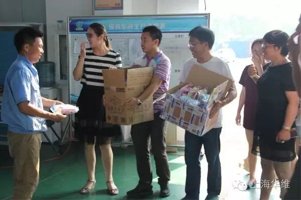 【华维 讯】七月的上海酷热难耐,近一月的“烧烤”天气让人贪恋空调不愿露头,然而对于那些在宽大车间里的生产工人来说,要承受着天气、机器和重体力劳动的多重热浪的炽烤。2016年7月29日,上海华维节水灌溉股份有限公司副总裁吴竹、工会主席顾志明带领销售部人员对车间员工进行了慰问和感谢。