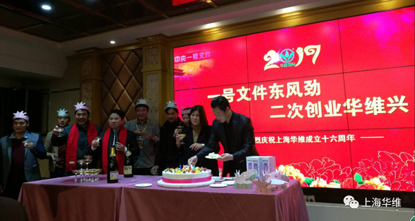 华维成立十六周年的庆典在吕名礼董事长又一首即兴的祝酒诗里火红启幕。
