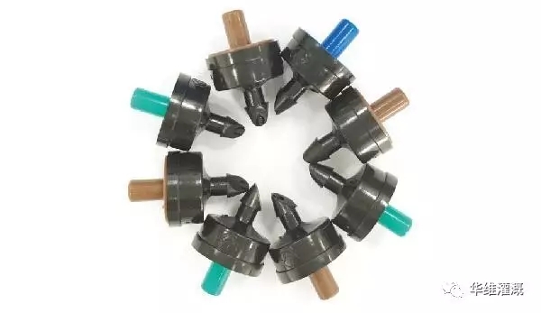 也可通过分配器与其它的灌水器(如滴箭)连接,用于分流,每个出水口的压力和流量相同,保证均匀的灌溉效果。