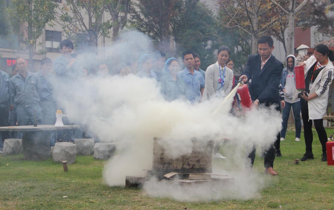 随后,安全管理人员为员工做消防安全知识讲座,对火情报警、常用灭火方法、如何逃生、灭火器的使用等进行了详细的讲解,并模拟火灾现场进行了灭火实战演练。