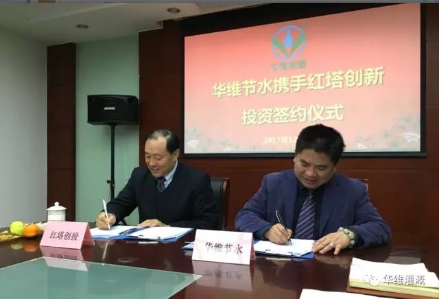 2017年12月5日,初冬的上海暖阳高照。红塔创新投资股份有限公司(以下简称红塔创投)投资上海华维节水灌溉股份有限公司签约仪式在华维上海总部举行。这是继中国农业大学校友股权投资基金(以下简称中农基金)之后,又一家战略入股华维的重量级投资机构。红塔创投孙晓总裁一行、中农创基金付文阁董事长,华维吕名礼董事长及部分高管出席了签约仪式。