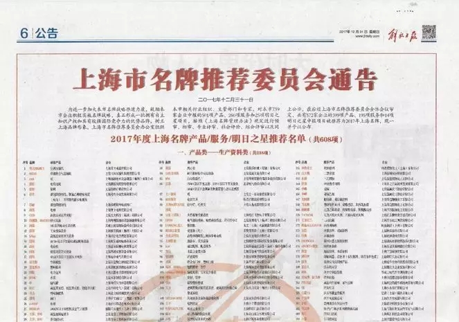 2018新年伊始,上海市工商行政管理局传来喜报:经上海市名牌推荐委员会预审,及组织的专业评审、综合评审、网上公示、最终审定,“华维”成功入选2017年度“上海名牌”(2017年12月31日,《解放日报》06、07、08版刊登了上海名牌推荐委员会通告,对2017年上海名牌产品/服务/明日之星推荐名单进行公示。)