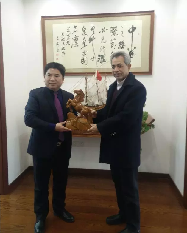 热爱诗文且擅长书法的阿里瑞扎·伊瓦什总领事在参观过程中,对华维的企业文化赞不绝口,特别是在聆听了吕名礼创作的《华维之歌》后更是如遇知音,双方欣然互换文化礼物。