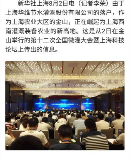 随着华维落户,一个灌溉装备农业新高地在金山区崛起。前不久,金山区委书记赵卫星到华维灌溉公司,就华维院士专家工作站的筹建情况、院士专家组成情况以及主攻方向等进行调研,在听到康绍忠院士和茆智院士对华维的高度评价后不由感慨道:“以后,不要动不动就去以色列看灌溉了,到咱们上海华维来看。”