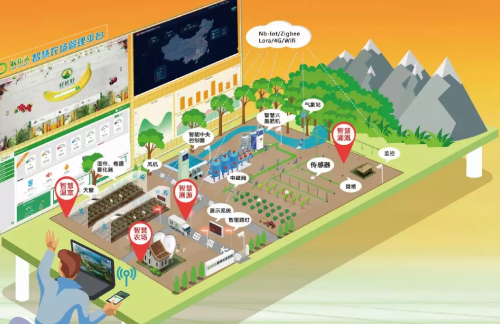 一座囊括丘陵、山地、平原等诸多地形,涵盖智慧温室调控、作物灌溉一体化管理等诸多功能的大型智慧农场,是如何运作的?