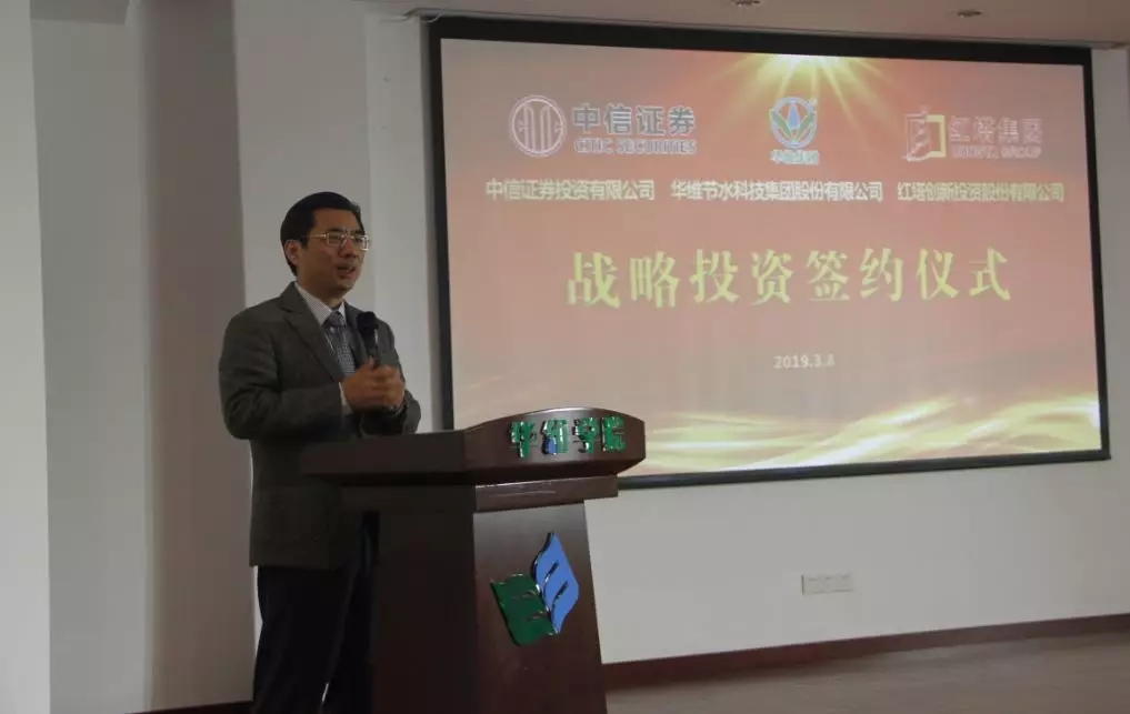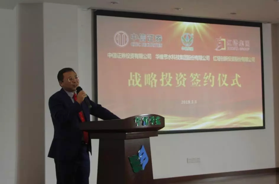 2019年3月8日、农历二月初二,“国际女神节”巧遇中国民间传统节日“龙抬头”,在这百年难遇的龙凤双节的美好日子,中信证券投资有限公司(下简称中信证券)、红塔创新投资股份有限公司(下简称红塔创投)战略投资华维节水科技集团股份有限公司(下简称华维)签约仪式在华维上海总部多功能厅隆重举行。