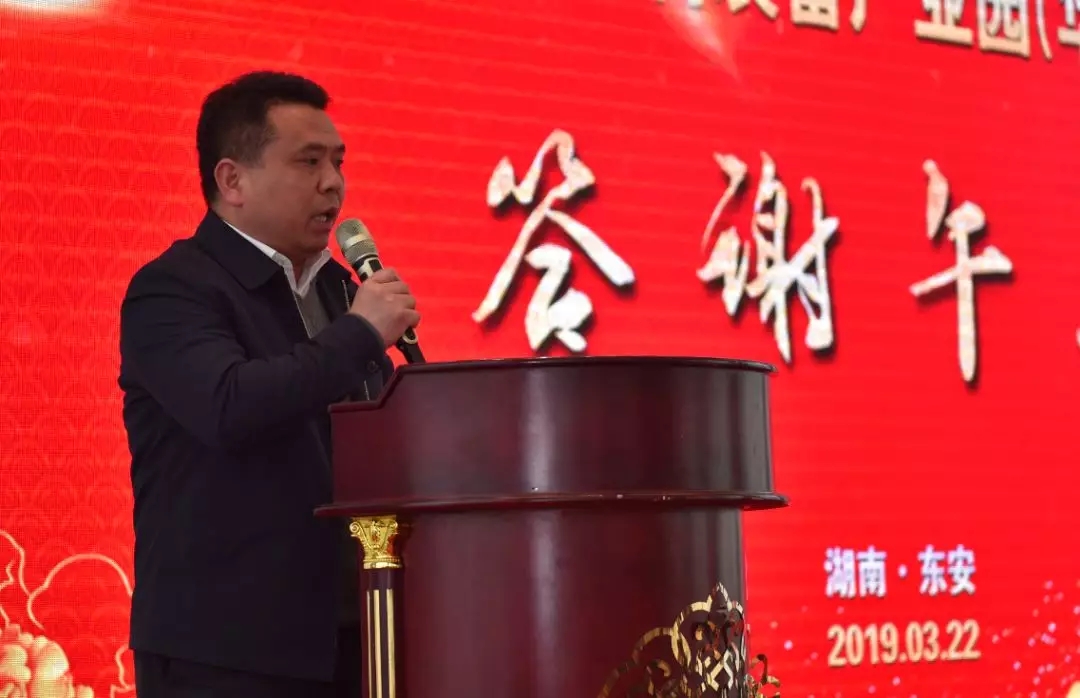 蔡富强在致辞中对华维华中园奠基典礼的成功举办表示热烈祝贺,对来自全国各地的朋友们表示热烈欢迎。蔡富强说,东安是投资兴业的热土、区位优势明显、营商环境好。相信华维落户东安,必将取得更大的发展,欢迎更多的客商来东安投资兴业。