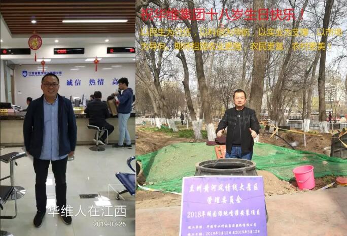 华维人在兰州喷灌项目现场发来的祝福(右)