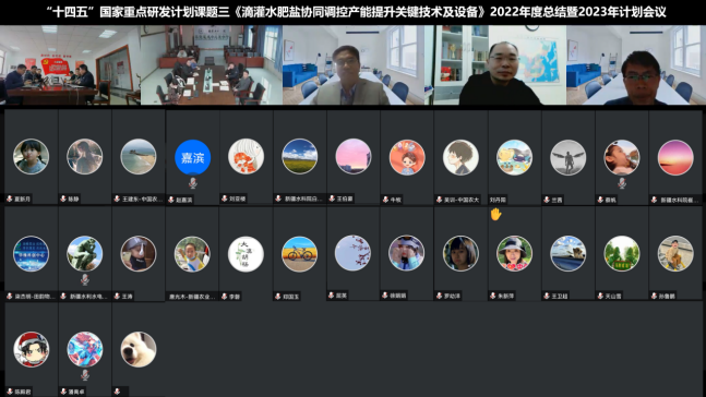 2023年2月1日上午,“十四五”国家重点研发计划项目“新疆绿洲节水抑盐灌排协同产能提升技术模式与应用(项目编号:2021YFD1900800)”课题三“滴灌水肥盐协同调控产能提升关键技术及设备(课题编号:2021YFD1900803)”在上海组织召开2022年工作总结和2023年实施方案讨论会。