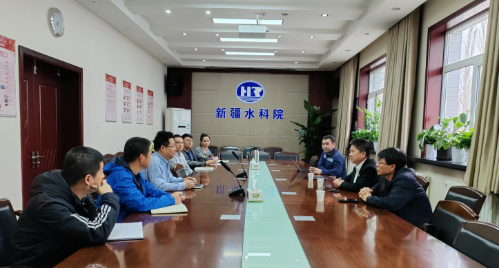 在与新疆水利水电科学研究院(下简称研究院)团队交流中,研究院党委书记张江辉、副院长聂新山和白云岗、研发中心主任崔春亮等,与华维团队就科研项目合作、相关水利新产品的研发和成果转化,及新疆地区水资源高效利用等层面展开深入研讨。