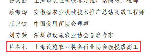 经上海设施农业装备行业协会推荐,华维董事长吕名礼入选设施特色作物种植专业组。