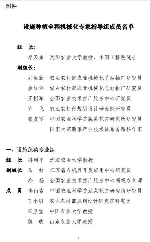 2023年9月,农业农村部农业机械化管理司成立设施种植全程机械化专家指导组,更好地贯彻落实《全国现代设施农业建设规划 (2023-2030年)》(农计财发[2023]6号)、《农业农村部关于发展现代设施农业的指导意见》(农计财发[2023]10 号 )《农业农村部关于加快推进设施种植机械化发展的意见》(农机发 [2020]3号 ),更好地发挥行业专家在决策咨询、技术指导、培训交流验收考核等方面的支撑服务作用,推动设施种植全程机械化高质量发展。