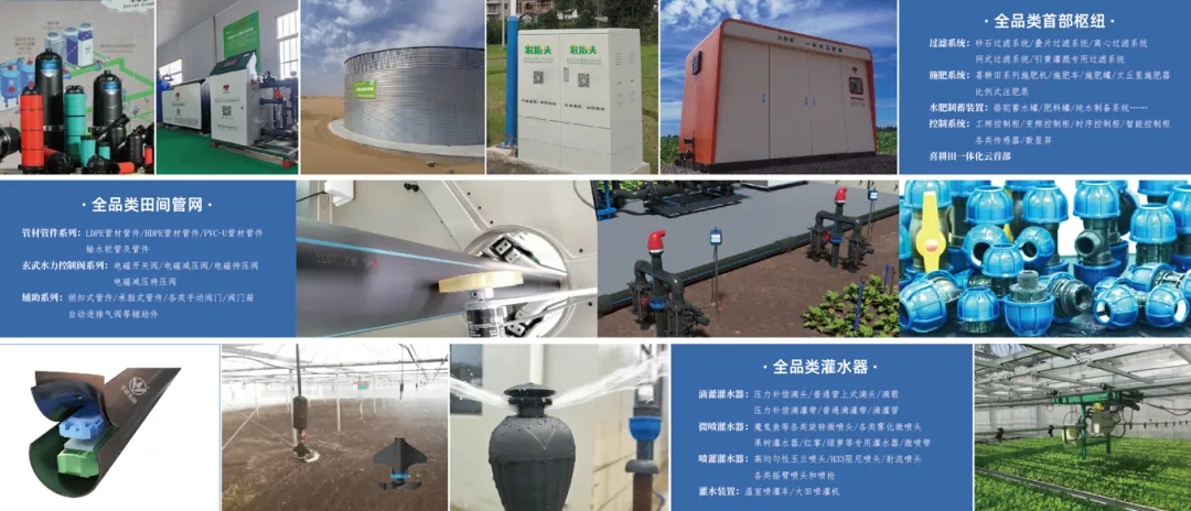 拥有过滤系统、施肥系统、水肥制蓄装置、智能控制系统、喜耕田一体化云首部等首部枢纽,PE及PVC管材管件、电磁阀、辅助管件等田间管网,滴灌、微喷、喷灌等全品类灌水器,农抬头数字农业云平台。成套产品,连接完美兼容,不需东拼西凑、售后服务没有推诿扯皮。