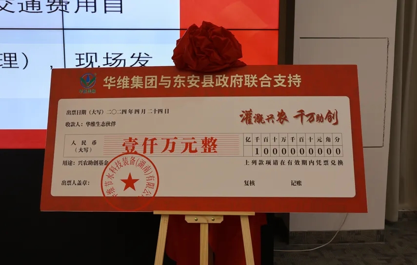 东安县委常委、副县长唐久梅致词,并与华维集团共同揭幕发布“灌溉兴农·千万助创”基金