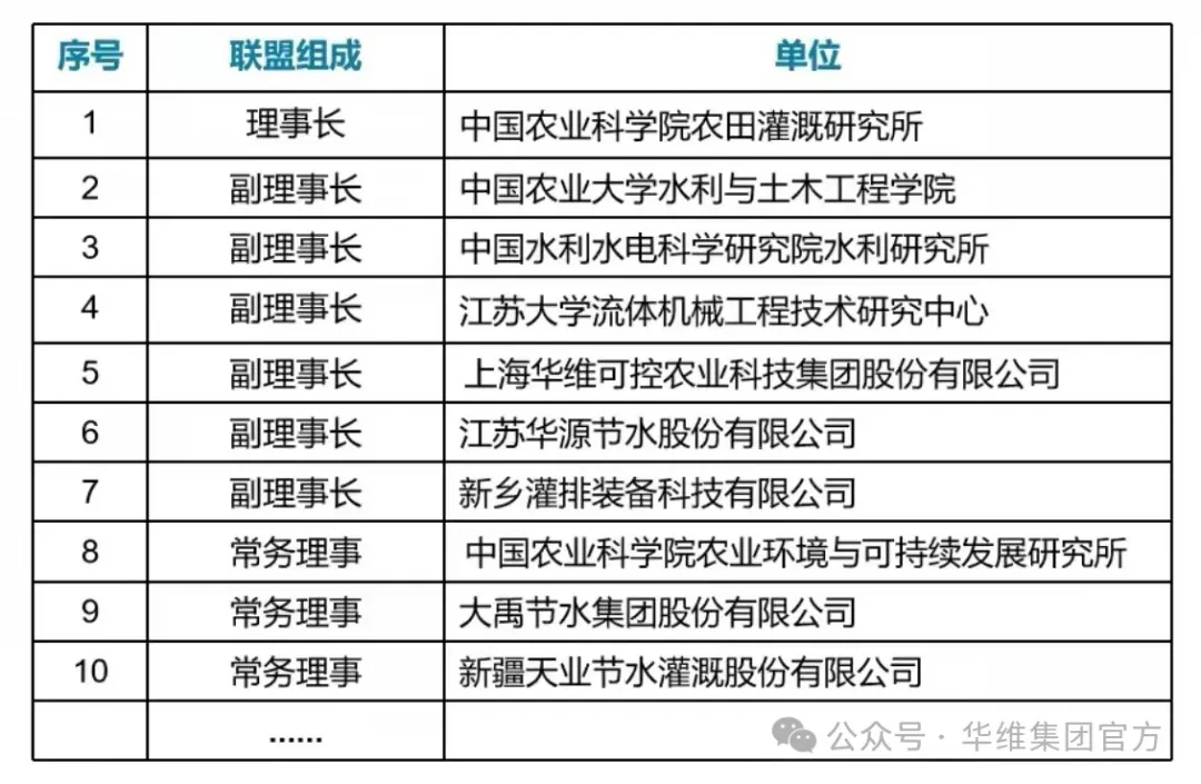国家灌溉农业绿色发展联盟于2018年5月19日成立。由中国农业科学院农田灌溉研究所牵头,联合中国农业大学、中国水利水电科学研究院、全国农业科技推广服务中心、江苏大学、华维科技等84家高校、科研机构、推广应用单位、灌排企业共同组建。