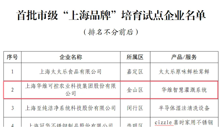 近日,上海市市场监督管理局组织开展了首批市级、区级“上海品牌”培育试点企业(产品/服务)申报评审工作,华维集团荣列市级“上海品牌”培育试点企业。