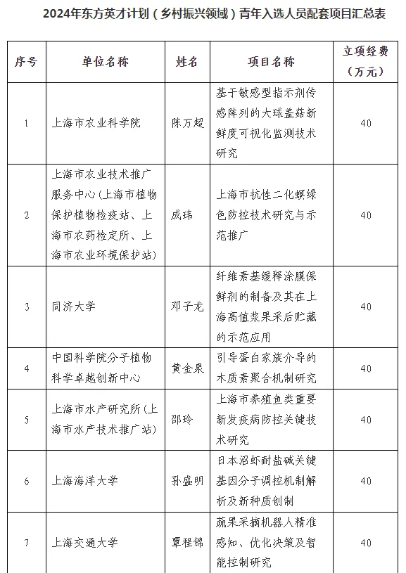 近日,上海市人才工作局发布2024年上海市东方英才计划乡村振兴领域青年项目人员名单,华维研究院常务副院长张中华成功入选(序号16,见文末)。