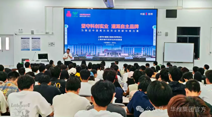 2025年9月21日,华维集团董事长吕名礼应邀为云南农业大学水利学院师生授课,以《坚守科创实业 灌溉自主品牌——为推进中国高水效农业贡献华维力量》主题,分享创业之路、华维智慧灌溉领域的科创实业之路和中国现代农业的发展之路,作为,吕名礼鼓励学生毕业后投身农业产业,推动智慧农业发展也可以成就一番事业、回馈社会、报效祖国,为助力乡村振兴、农业强国添一份力。