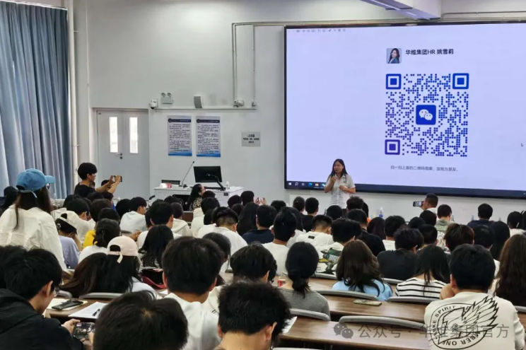 主题报告后,学生就实习、就业等相关问题与华维集团人力中心代表交流沟通。