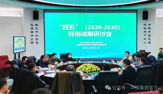 20251224日,华维集团召开四五2026-2030年)科创战略研讨会。中国工程院院士康绍忠领衔,来自国内顶尖高校及科研院所的十余位权威专家,与华维集团核心管理团队、技术骨干共同探讨未来五年科创发展路径,为华维集团在可控农业领域的战略布局注入专业智慧。