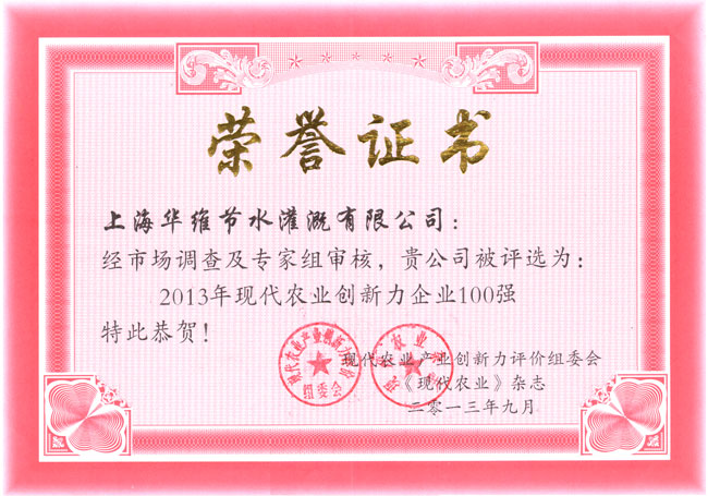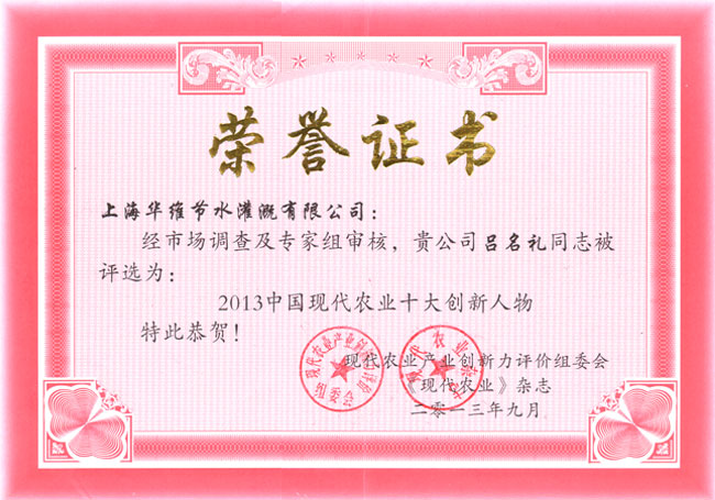 作为中国灌溉行业的杰出企业,上海华维受邀出席了本次大会,并发表了“优胜劣汰 质存高远——中国灌溉行业质量问题的探讨”的主题演讲,喜获“2013中国现代农业十大创新人物奖和2013中国现代农业创新力企业100强”两个奖项。