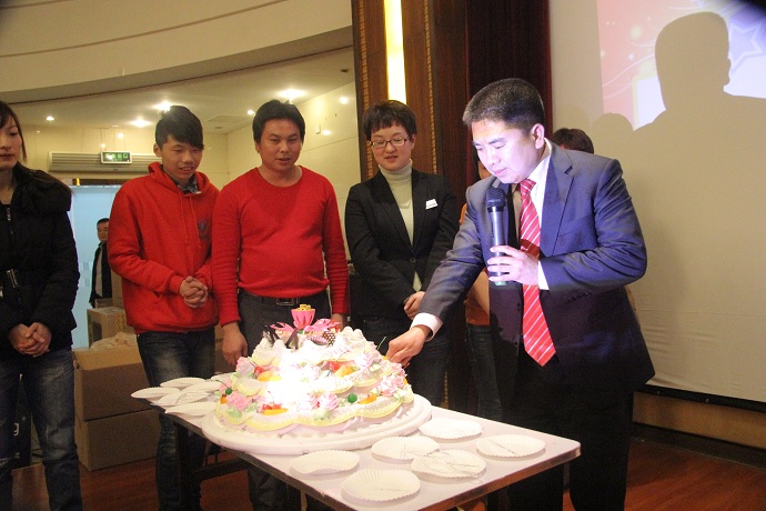 汇演结束后,年会进入了晚宴阶段。董事长吕名礼先生热情洋溢的新春祝酒贺词开场,大家纷纷举杯,大声谈笑,庆祝新的一年开始。晚宴进行的同时,穿插了精彩的节目、盛大抽奖。众多大奖:液晶电视、洗衣机、Ipad平板电脑、等神秘重量级奖项现场揭晓将会场气氛引向高潮。年会组委会为12月及元月员工筹备的庆生会也安排在期间,吕董事长亲手喂10几位寿星蛋糕,更是甜蜜升级。新年钟声响起,大家挥动着手臂合力演唱歌曲《明天会更好》,本次年会也圆满的落下帷幕。