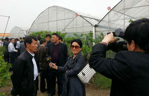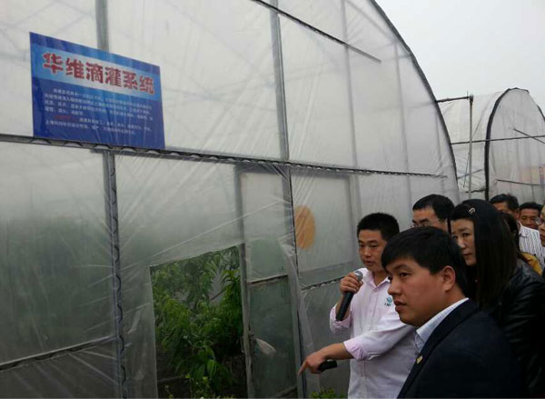 【华维 讯】2014年4月17日,2014上海市区域特色农业生产基地推进会在上海南汇成功召开,全市各区县农业相关部门主管领导及大型种植基地负责人等近百人,参观考察了华维负责设计和实施的水蜜桃高效水肥一体化示范基地,随后举行了专场座谈会,上海浦东电视台全程拍摄了此次推进会。
