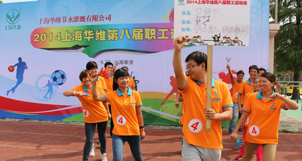 【华维 讯】2014年9月27日,上海华维节水灌溉有限公司全体员工在上海奉贤展开了一场别开生面的“2014上海华维第八届职工运动会”。华维人及华维人家属近150余人在校园里重温了美好的学生时代,在烈日骄阳下竞技协作、载歌载舞,在欢声笑语中挥洒汗水、展现自我,在团队拼搏中群策群力、情感互动。