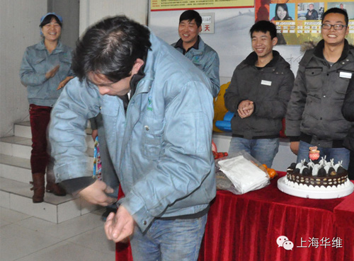 咳咳,还是从头说起。 华维每月会为当月过生日的华维人举行集体庆生会,有衣着靓丽的办公室人员,也有体现劳动光荣的车间人员,如果下面你不小心看到了他们不太清洁的衣服,请为他们点个赞,因为劳动者才是最美的人!  好了,背景交代完毕,下面上图喽!