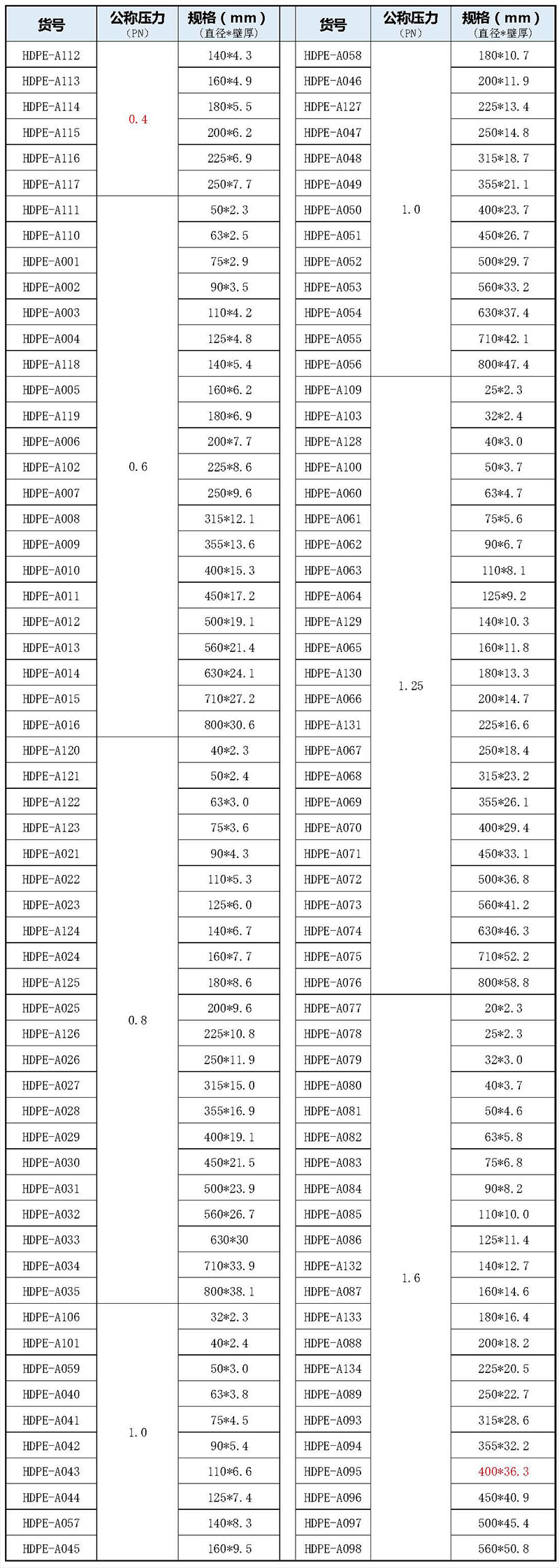 • 型号:HDPE