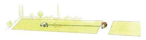 2、利用牵引设备把PE管以及连接在PE管上的喷头车牵引至田块的另一端;