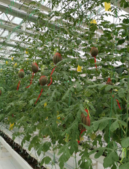 打顶: 西瓜坐瓜完成后,一般保留22-25片功能叶后即可打顶。