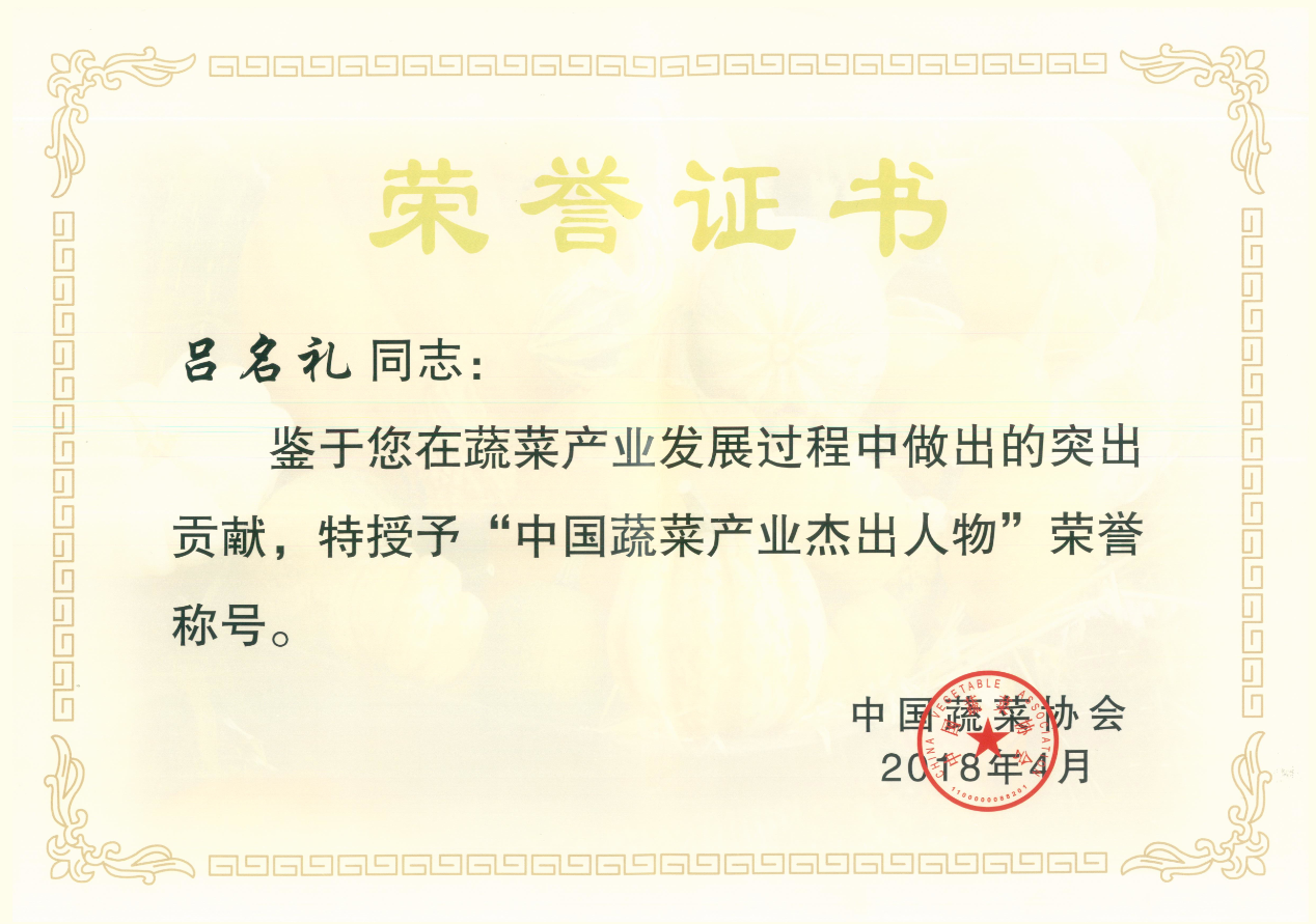 华维董事长荣获首批中国蔬菜产业杰出人物