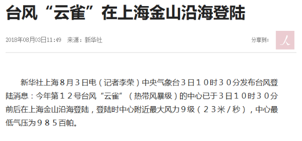 “云雀”在上海都不敢肆台风虐,弱弱地兜了一圈就偃旗息鼓了,新华社惜字如金地记录了一下。