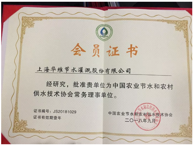 2018年9月18日,中国农业节水和农村供水技术协会第三次会员大会暨农业节水科技奖颁奖大会在北京召开。上海华维荣获“农业节水科技奖”,这是我国农业节水行业科技发展水平的最高奖项。