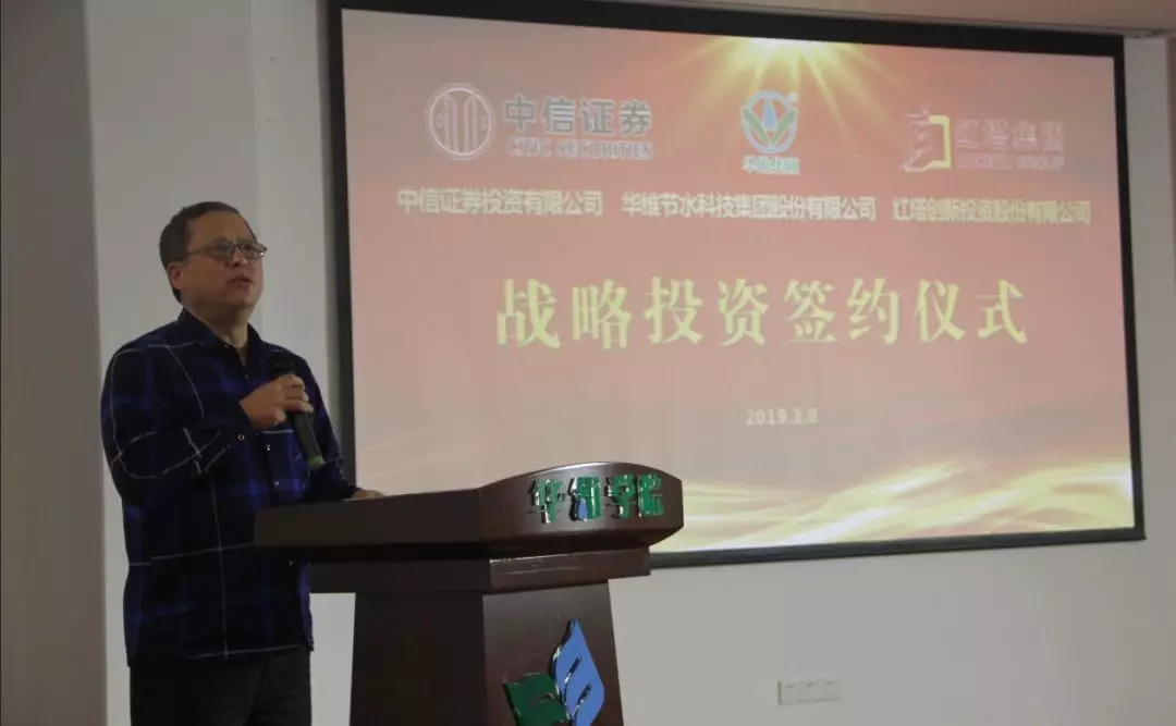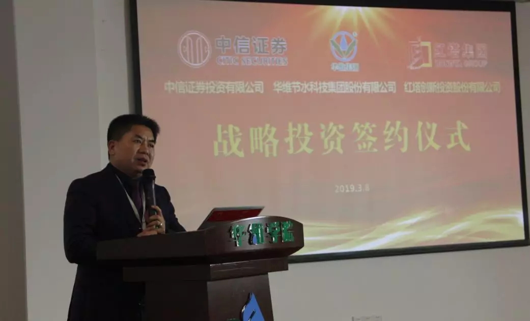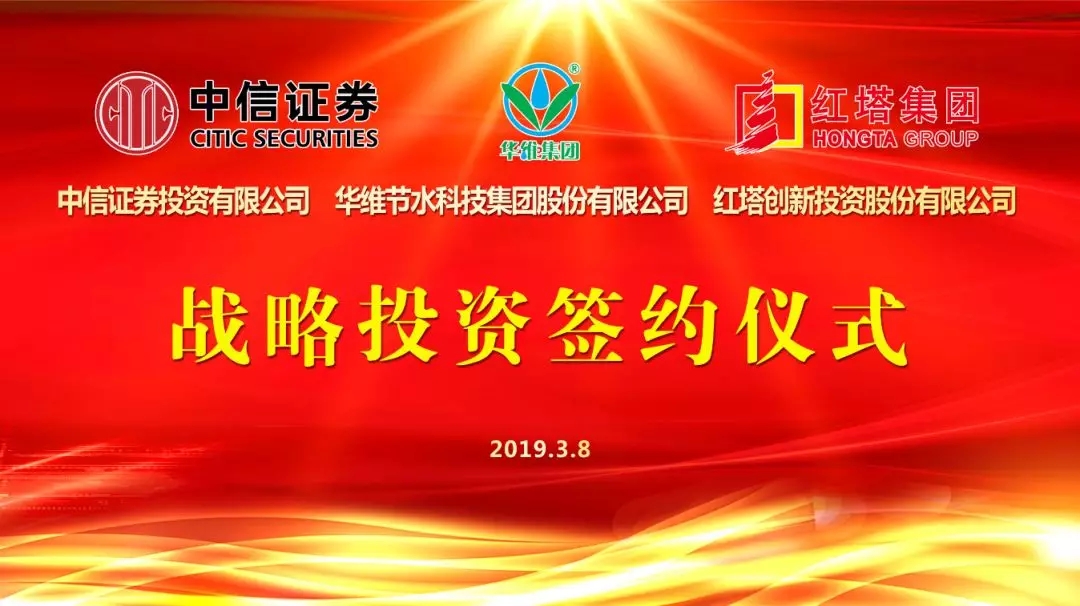 2019年3月8日、农历二月初二,“国际女神节”巧遇中国民间传统节日“龙抬头”,在这百年难遇的龙凤双节的美好日子,中信证券投资有限公司(下简称中信证券)、红塔创新投资股份有限公司(下简称红塔创投)战略投资华维节水科技集团股份有限公司(下简称华维)签约仪式在华维上海总部多功能厅隆重举行。