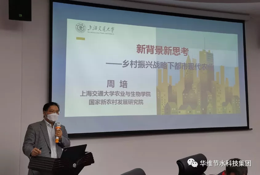 上海交通大学新农村发展研究院常务副院长、农业与生物学院党委书记周培教授以乡村振兴战略下都市现代农业的发展为题做了主旨报告。周培就都市农业发展的现状、七大卡脖子的痛点难点、十四五都市现代农业的发展建议和行动计划等做了全面深入的阐述。