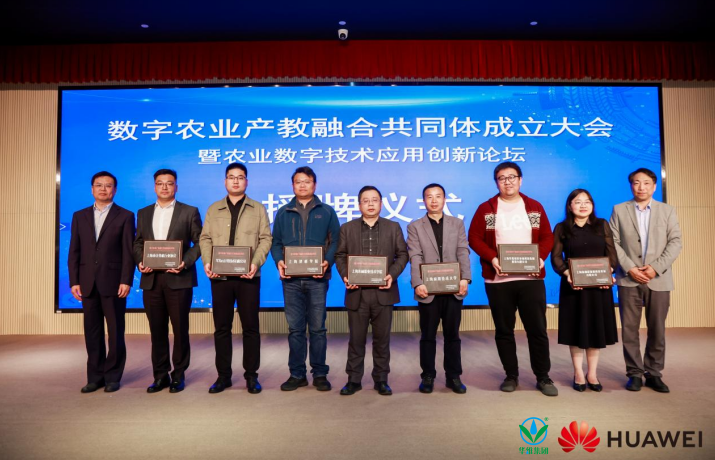 数字农业产教融合共同体由协会、上海农林、华维集团、华为、上海建桥学院、上海应用技术大学、上海新朋程数据科技发展有限公司组成。