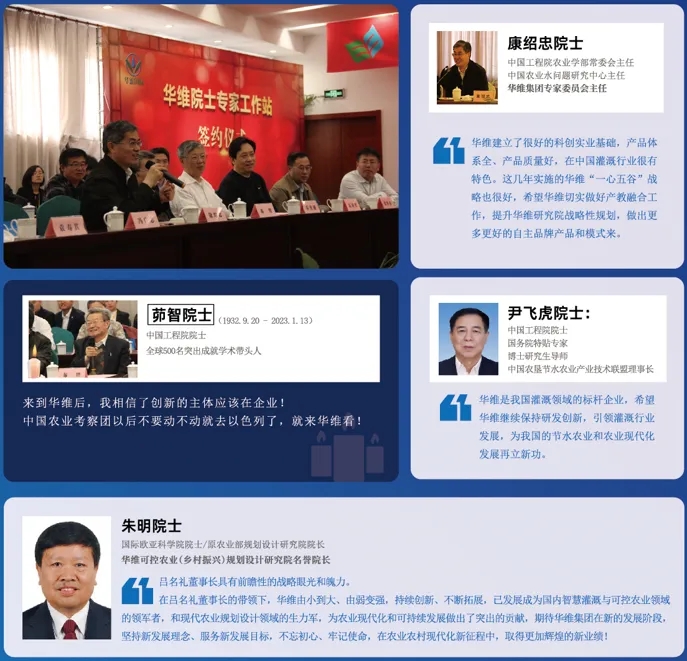 华维集团多次获得茆智院士、康绍忠院士、尹飞虎院士、朱明院士等知名院士、专家及各级政府领导的点赞,二十三年品牌知名度大,美誉度高。