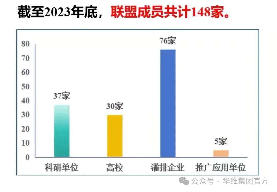 近几年来,联盟面向乡村振兴、灌区现代化改造、高标准农田建设等产业,进一步强化科企深度合作,吸引从事智能灌溉、农业物联网、信息化、灌区用水测控技术64家灌排企业加入灌溉联盟。截至2023年底,联盟成员共计148家。