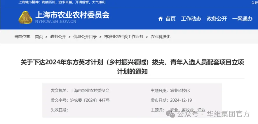 近日,上海市人才工作局发布2024年上海市东方英才计划乡村振兴领域青年项目人员名单,华维研究院常务副院长张中华成功入选(序号16,见文末)。