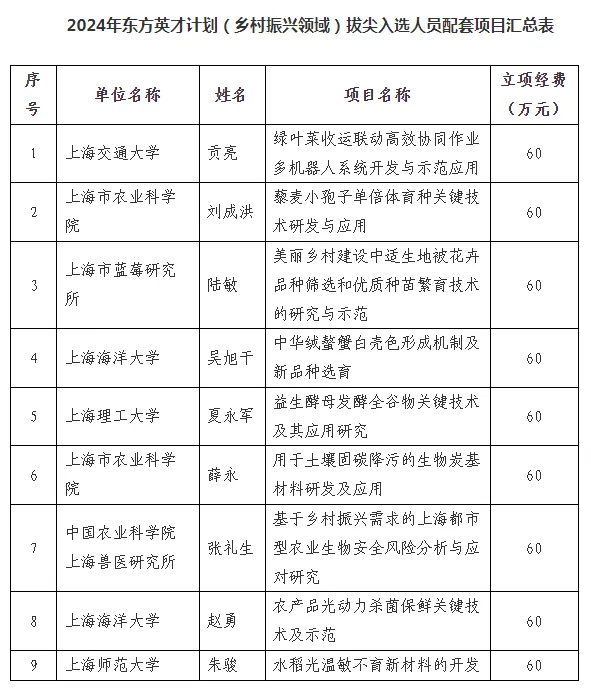 人才是发展新质生产力的第一资源,是推进乡村全面振兴和实现农业农村现代化的基础性、战略性支撑。上海市东方英才计划由上海市委组织部牵头组织,市人才办、市人社局、市农业农村委共同开展选拔工作,目的是落实市委、市政府关于新时代上海实施人才引领发展战略的相关意见,推动上海市高层次人才队伍的建设,汇聚、培育一批各行各业有求实、探索、创新精神的人才。