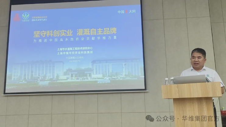 中国灌区协会会长王爱国、中国灌溉排水发展中心副主任王欢、山西省水利厅副厅长成接安、大同市政协副主席王丽萍分别致辞,强调微灌技术对推动农业节水增效、保障粮食安全的重要意义。中国农业节水和农村供水技术协会副会长韩振中、全国农业技术推广服务中心首席专家杜森,分别就“黄河灌区深度节水实现路径、水肥协同助力大面积单产提升”层面作报告。华维集团受邀参会,吕名礼董事长作《坚守科创实业,灌溉自主品牌》报告,从科创实业层面阐述华维助力行业技术创新、推进中国高水效农业发展