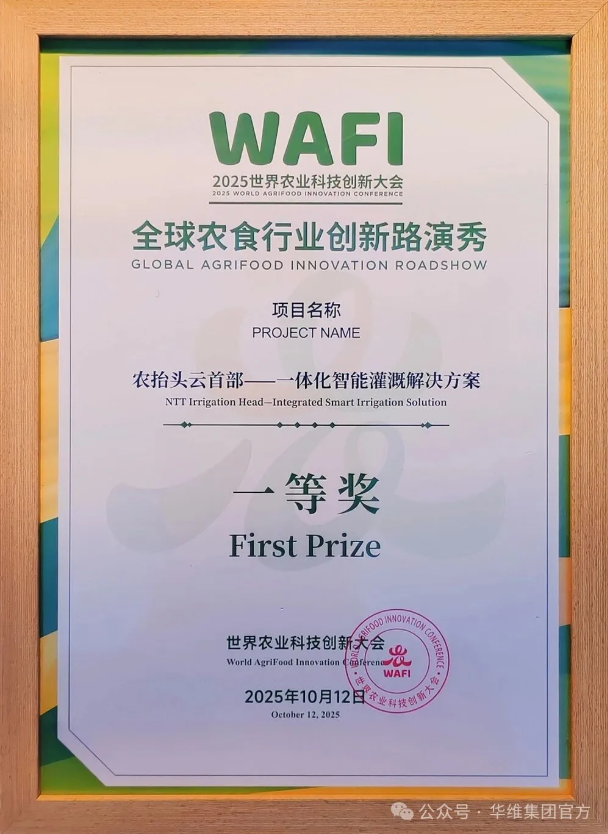 10月12日,2025世界农业科技创新大会(WAFI)全球农食行业创新路演秀大会专场圆满落幕。华维集团路演的一体化智能灌溉解决方案第四场路演,光明网直播超40万关注,,得到与会评委专家一致点赞),从100余个参赛团队中目脱颖而出,荣获一等奖