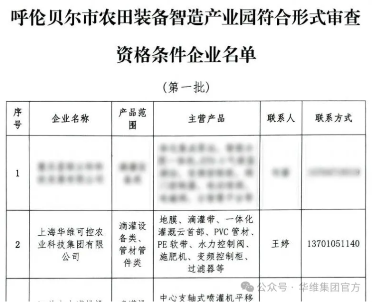 2025年10月30号,全国首个高标准农田装备智造产业园在内蒙古呼伦贝尔市正式投入运营,上海华维可控农业科技集团股份有限公司等首批18家行业领先企业入园。