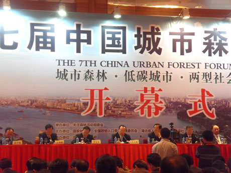 由国家林业局、全国政协人口资源环境委员会、省政府、经济日报社主办,武汉市政府承办的第七届中国城市森林论坛于4月29日在武汉圆满闭幕。全国政协副主席白立忱、湖北省委书记罗清泉、湖北省省长李鸿忠、国家林业局局长贾治邦、经济日报社社长徐如俊、国内外75个城市市长或市长代表近500人等参加了本届盛会。新华社、人民日报、中央电视台等媒体进行了现场报道。会上授予了武汉等森林城市称号。