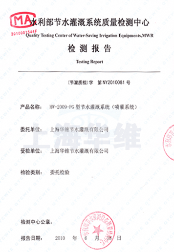 上海华维各项灌溉系统顺利通过水利部监测中心检测。